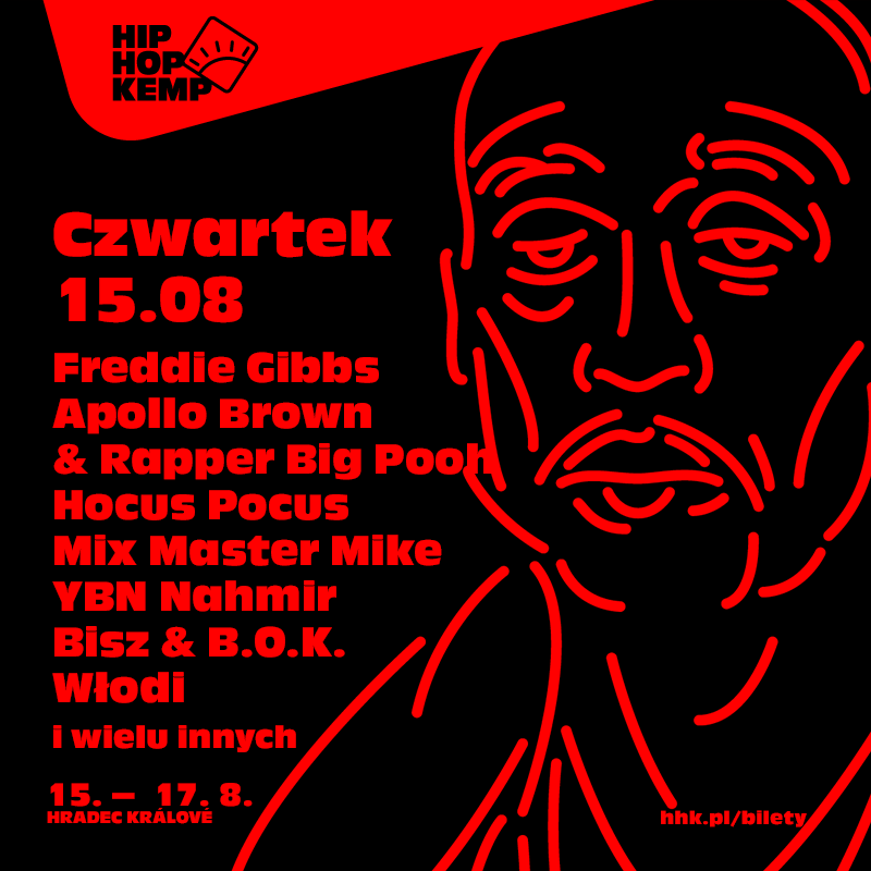 Na szczęście organizatorzy Kempa na najlepsze koncerty nie każą czekać nam do sobotniego finału Festiwalu. Już w czwartek bowiem na scenę wjedzie Freddie Gibbs! Tego dnia publiczność do granic rozbujają również Francuzi z Hocus Pocus, Apollo Brown & Rapper Big Pooh zapewnią nam sporą dawkę klasycznie brzmiącego rapu, a Mix Master Mike pokaże jak zagrać wzory set. Musicie tam być. I na wielu innych koncertach jakie zaplanowano na ten dzień.
