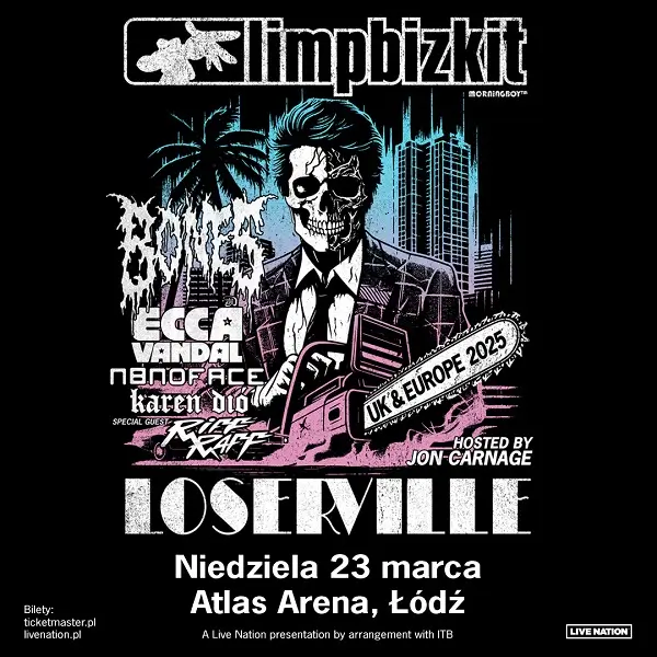 Limp Bizkit Polskę odwiedzą w ramach właśnie ogłoszonej europejskiej części trasy „LOSERVILLE 2025”. Koncert zaplanowany na 23 marca w Łodzi ogłoszono jako „LOSERVILLE 2025 with LIMPBIZKIT & Special Guests”. Przedsprzedaż biletów na to wydarzenie, dla klientów Ticketmaster, rozpocznie się w czwartek, 24 października o godzinie 10:00. Sprzedaż ogólna natomiast wystartuje w piątek 25 października o godzinie 10:00 na www.LiveNation.pl. Organizatorem koncertu jest Live Nation.