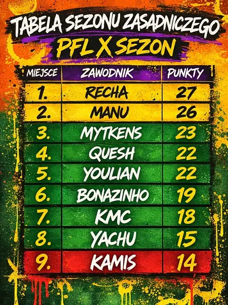 Jubileuszowy sezon składał się z 4 ustawek. Kolejno wygrywali je Mytkens, Youlian, Manu oraz Quesh i to oni w pierwszej kolejności zagwarantowali sobie udział w Wielkim Finale. 4 pozostałe miejsca przypadły tym, którzy przez cały sezon uzbierali największą liczbę punktów. Są to Recha, Bonazinho, KMC i Yachu. W tegorocznym top 8 Poznań Freestyle League mamy więc mix świeżej krwi z doświadczonymi, uznanymi już zawodnikami. Każdy ma swoje atuty i z pewnością nie odda wygranej łatwo. Warto przypomnieć, że aktualnym, dwukrotnym mistrzem z rzędu jest Yachu. Młody, ale utytułowany już freestyle’owiec, stoi więc przed szansą wyrównania rekordu Bartka, który po pas mistrzowski PFL’a sięgał aż 3 razy z rzędu. Czy Yachowi również uda się ta sztuka? Wpadajcie na Wielki Finał 10 sezonu Poznań Freestyle League i przekonajcie się sami.