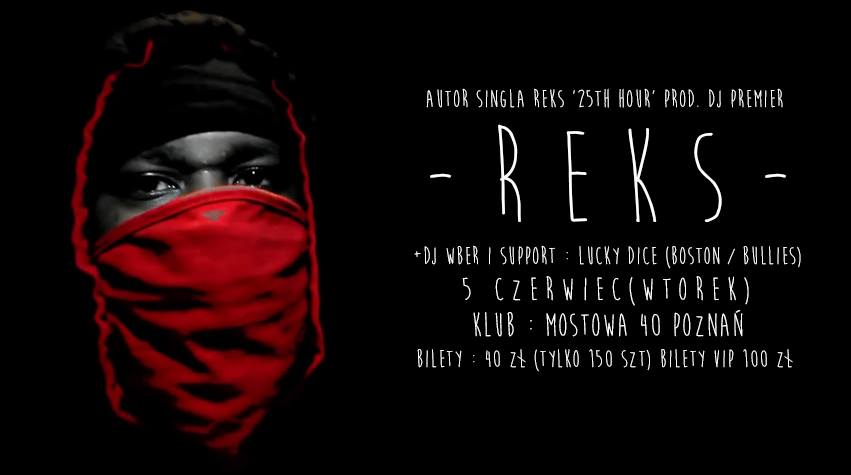 Boston czuje się w Poznaniu bardzo dobrze. Po koncercie Edo G do stolicy Wielkopolski 5 czerwca zawita nikt inny jak REKS. Mający na koncie współpracę z m.in. DJ’em Premierem i Statikiem Selektah zagra w klubie Mostowa 40, a na scenie towarzyszyć będzie mu Lucky Dice, z którym REKS tworzy zespół Bullies.