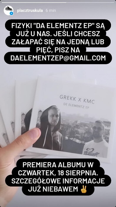 Wczoraj na instastory Grekka pojawiło się zdjęcie fizycznego wydania albumu, a z kolei na swoim story, KMC zdradził, że premiera „DA ELEMENTZ EP” będzie miała miejsce za równy tydzień, w czwartek 18 sierpnia: